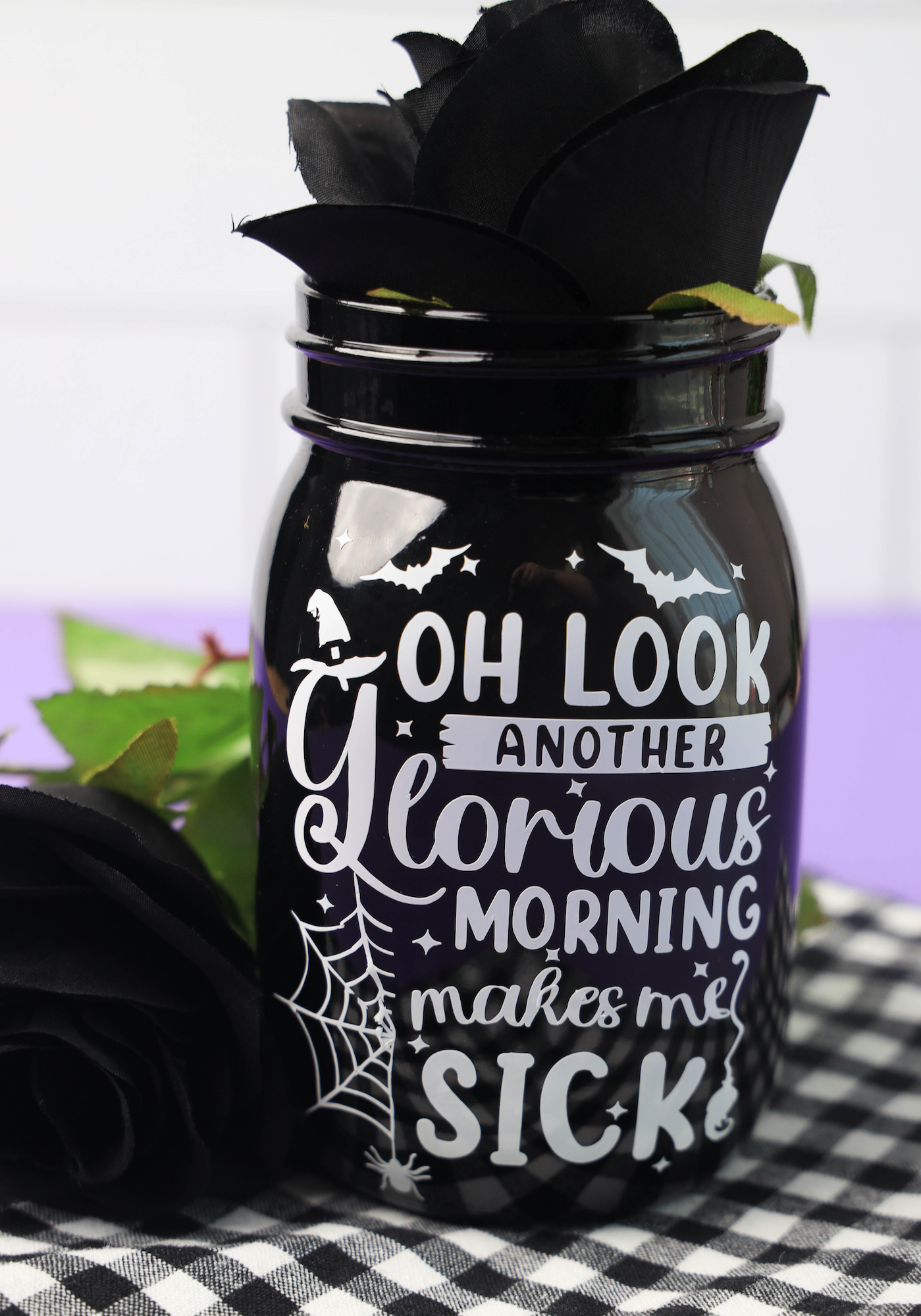 Oh Look Another Glorious Morning Makes Me Sick SVG file and use it to make t-shirts, mugs, signs or a mason jar vase like we did.