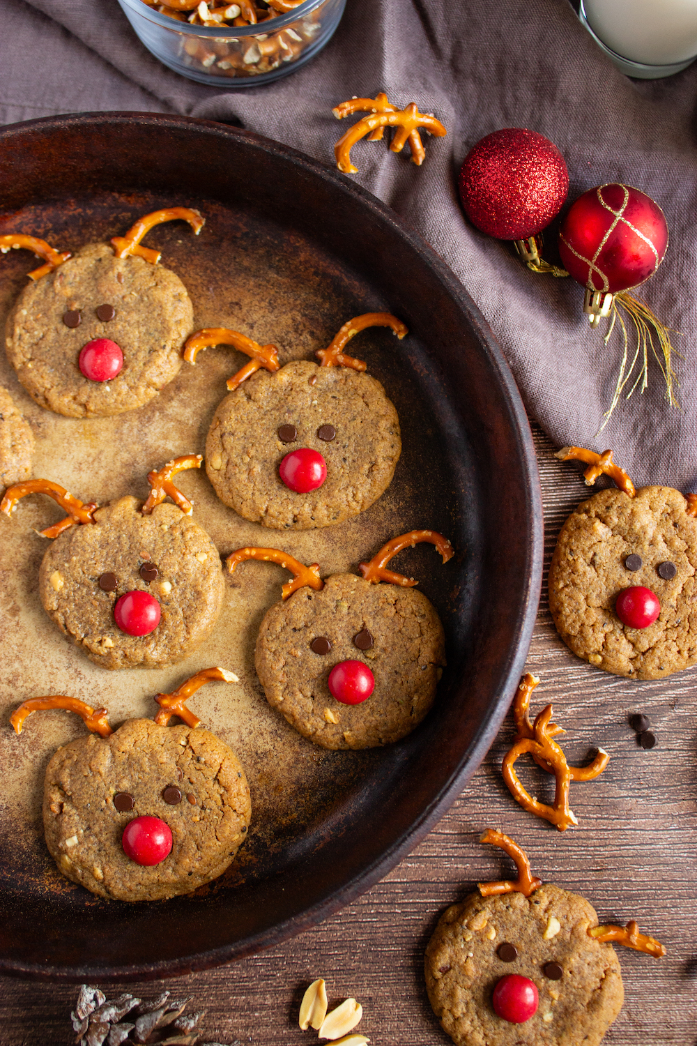 Cute reindeer cookies made with a unique combination of peanut butter and Biscoff cookie dough.