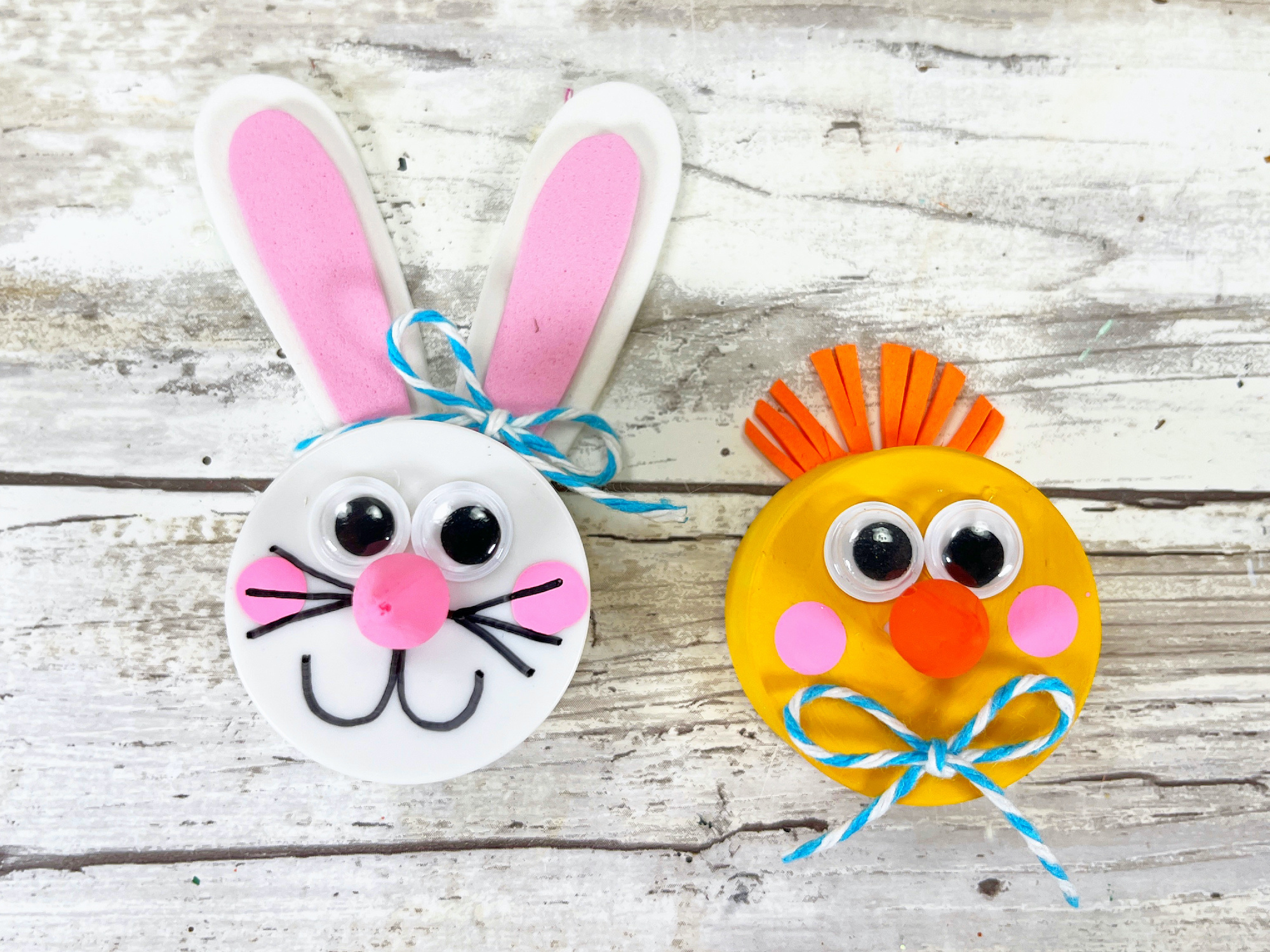 Turn dollar store tea lights into a cute Easter bunny and chick!