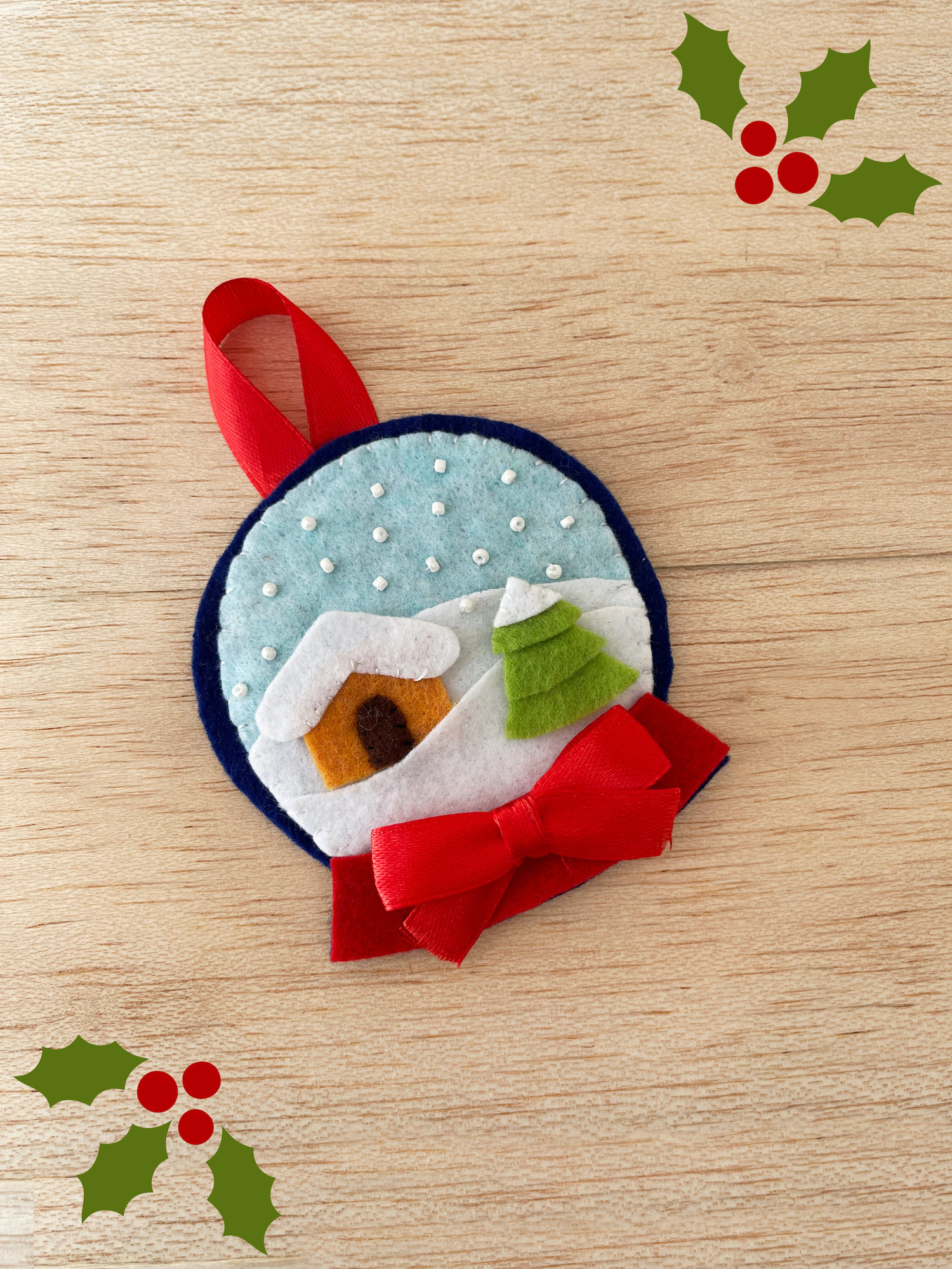 Free pattern to make a felt snow globe ornament using felt and hand stitching. Easy Christmas craft with instant download template.