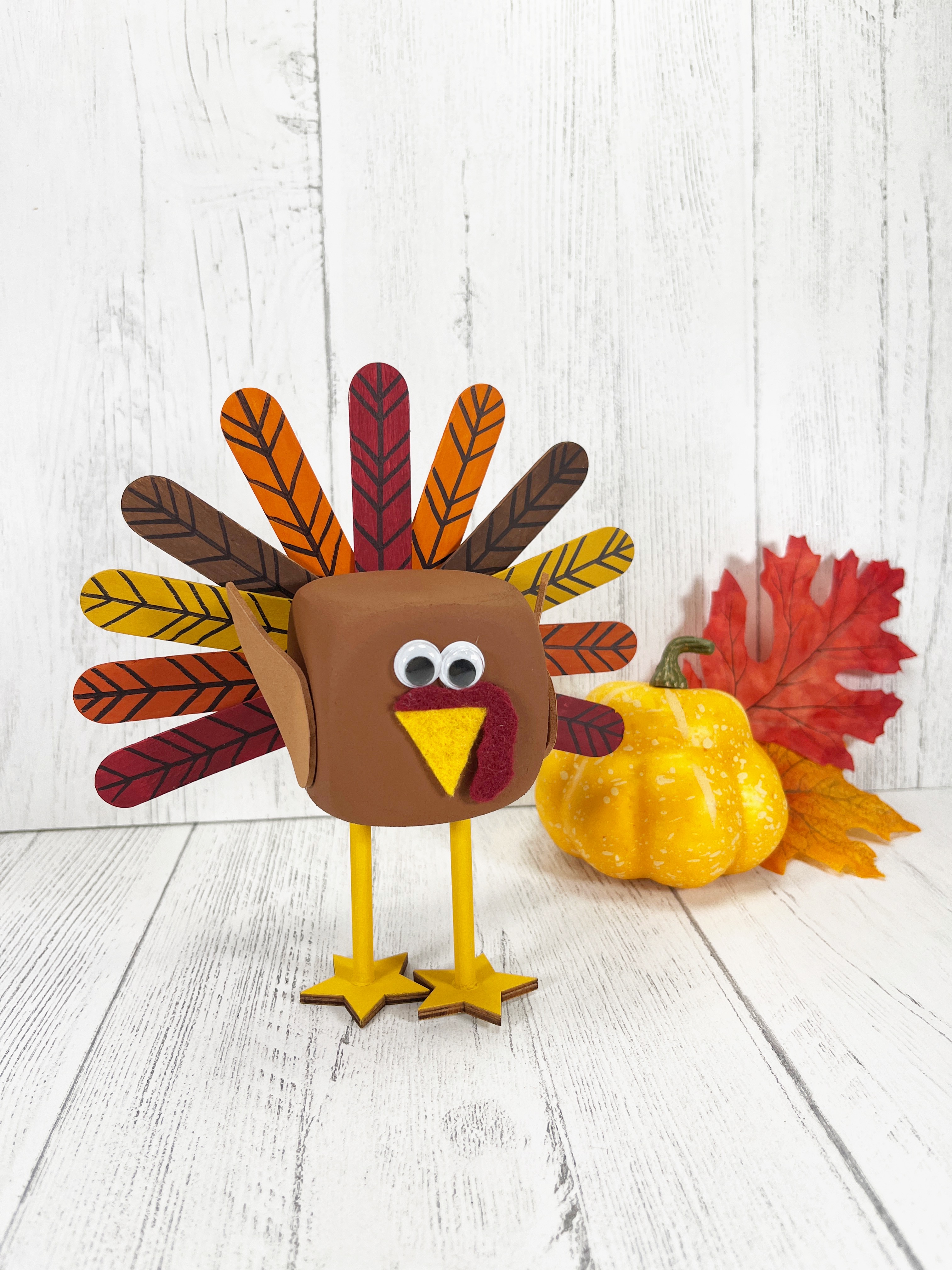 Make an adorable Thanksgiving turkey using a foam dice and other supplies from the dollar store. Get the free pattern and start crafting!
