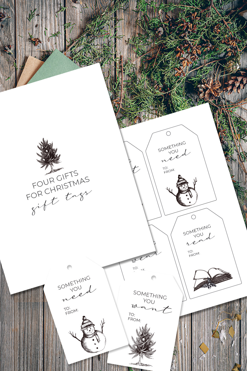 Continue this frugal gift-giving with these beautiful Four Gifts of Christmas tags.