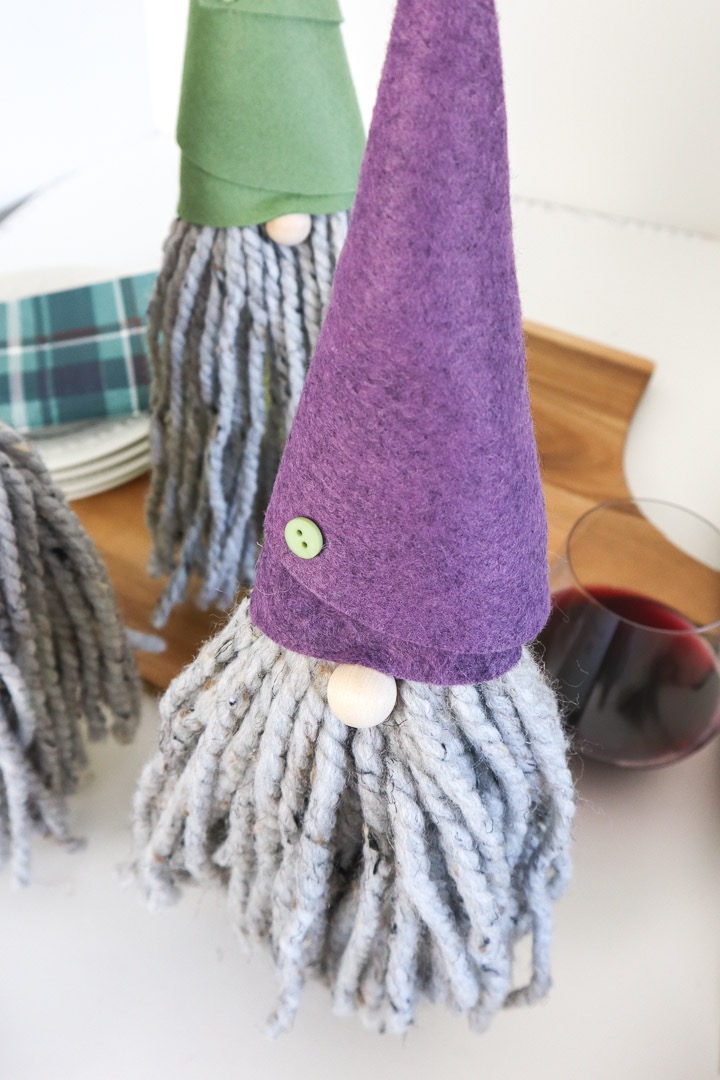 Make these Scandinavian felt gnomes to cover a wine bottle or other bottle. See the full picture tutorial here: