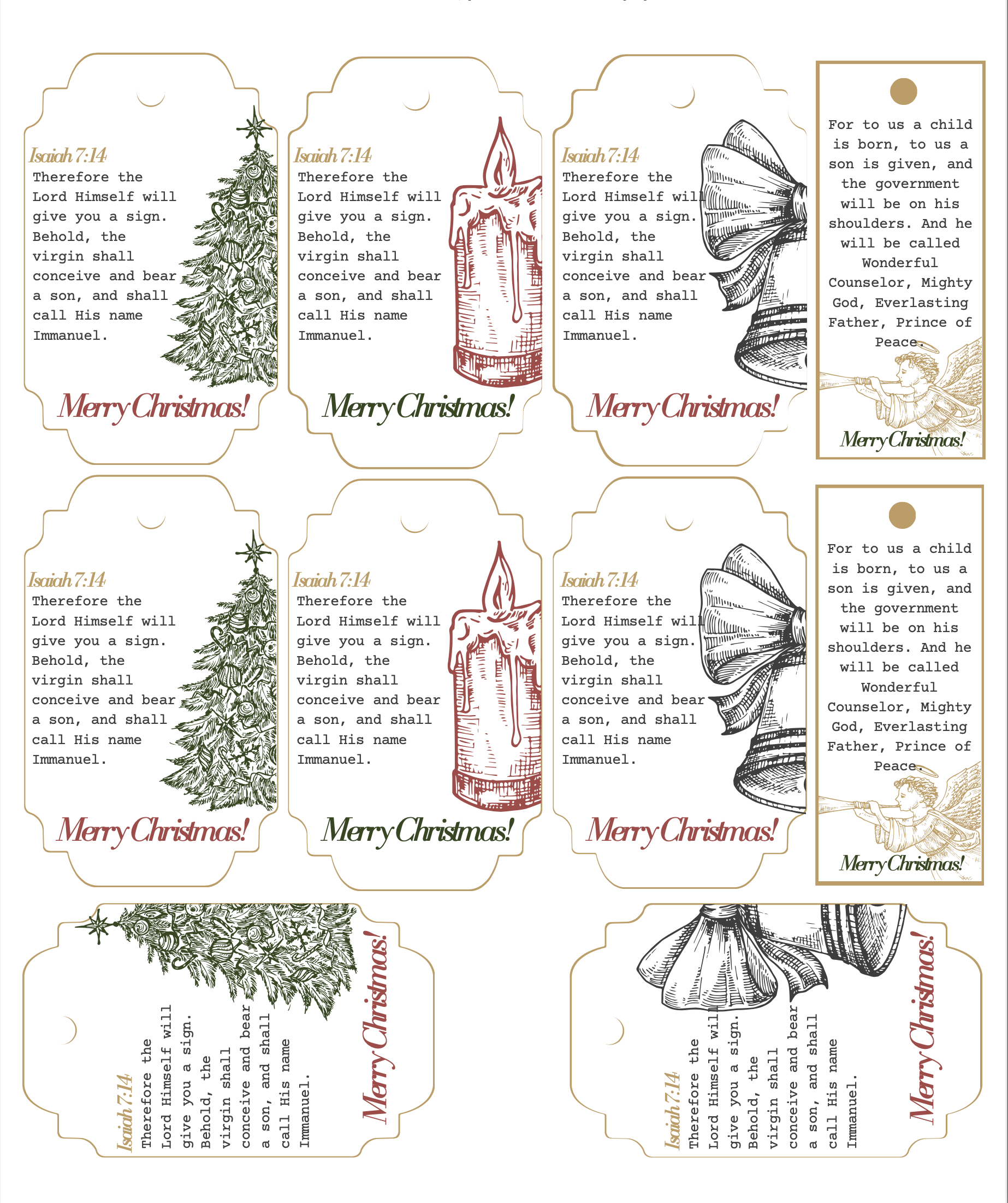 Four unique Christmas scripture gift tags. Instant download PDF file to print at home.