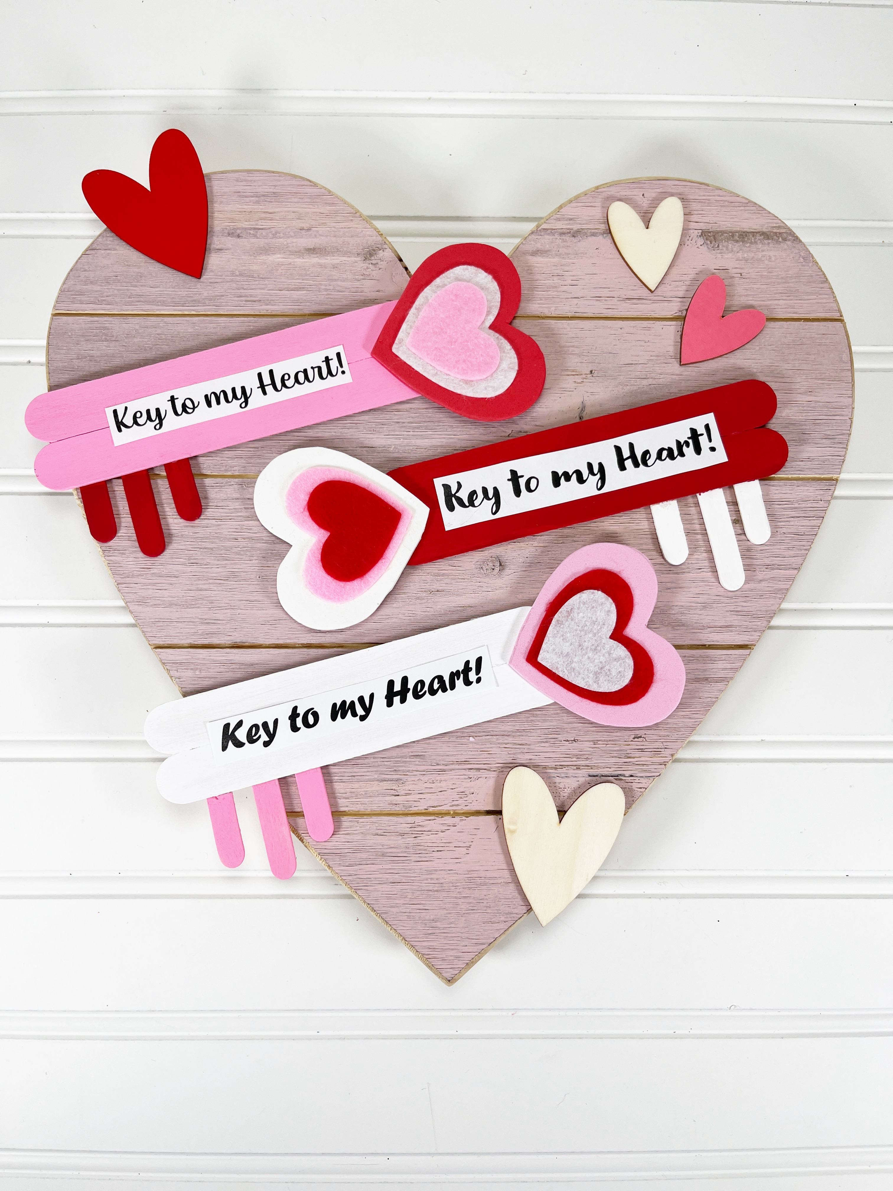 DIY Key to My Heart craft is perfect for Valentines Day. Get free printable sayings to download to make this Dollar Tree craft.